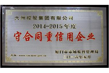 2016年7月27日上午,廈門市2014-2015年度守合同重信用企業(yè)經(jīng)驗交流暨表彰大會于國際會議中心隆重舉行。大洲控股集團(tuán)有限公司榮獲“2014-2015年度廈門市守合同重信用企業(yè)”榮譽稱號。